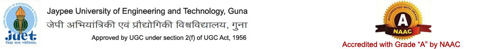 Jaypee University of Engineering & Technology, Guna has been established vide Government of Madhya Pradesh gazette extra ordinary No.3 of 2010 dated 29th April 2010 as a private university in the State of MP under the provisions of MP Niji Vishwavidyalaya Adhiniyam 2007. The university has been notified by the UGC under section 2(f) of the UGC Act, 1956 and Accredited by NAAC with Grade “A” in very first cycle of Accreditation in 2016. This University is sponsored by Jaypee Group.. It was earlier Jaypee Institute of Engineering and Technology, Guna, established in the year 2003 based on the MOU signed between Jaiprakash Sewa Sansthan (a not-for-profit trust) and the Government of Madhya Pradesh with an aim of becoming a Center of Excellence in Engineering and Technology in MP.