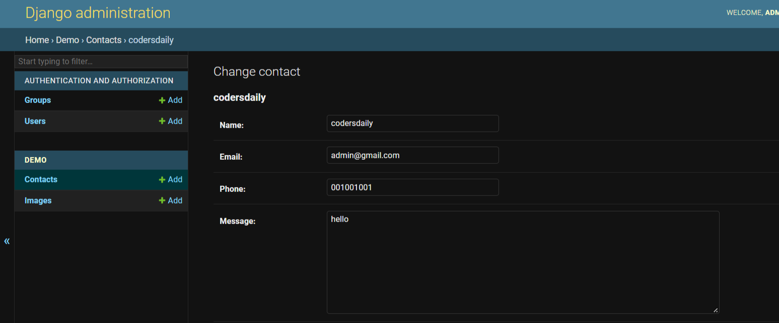 Here, we have created a Contact class that will take the name, email, phone, and image as input.