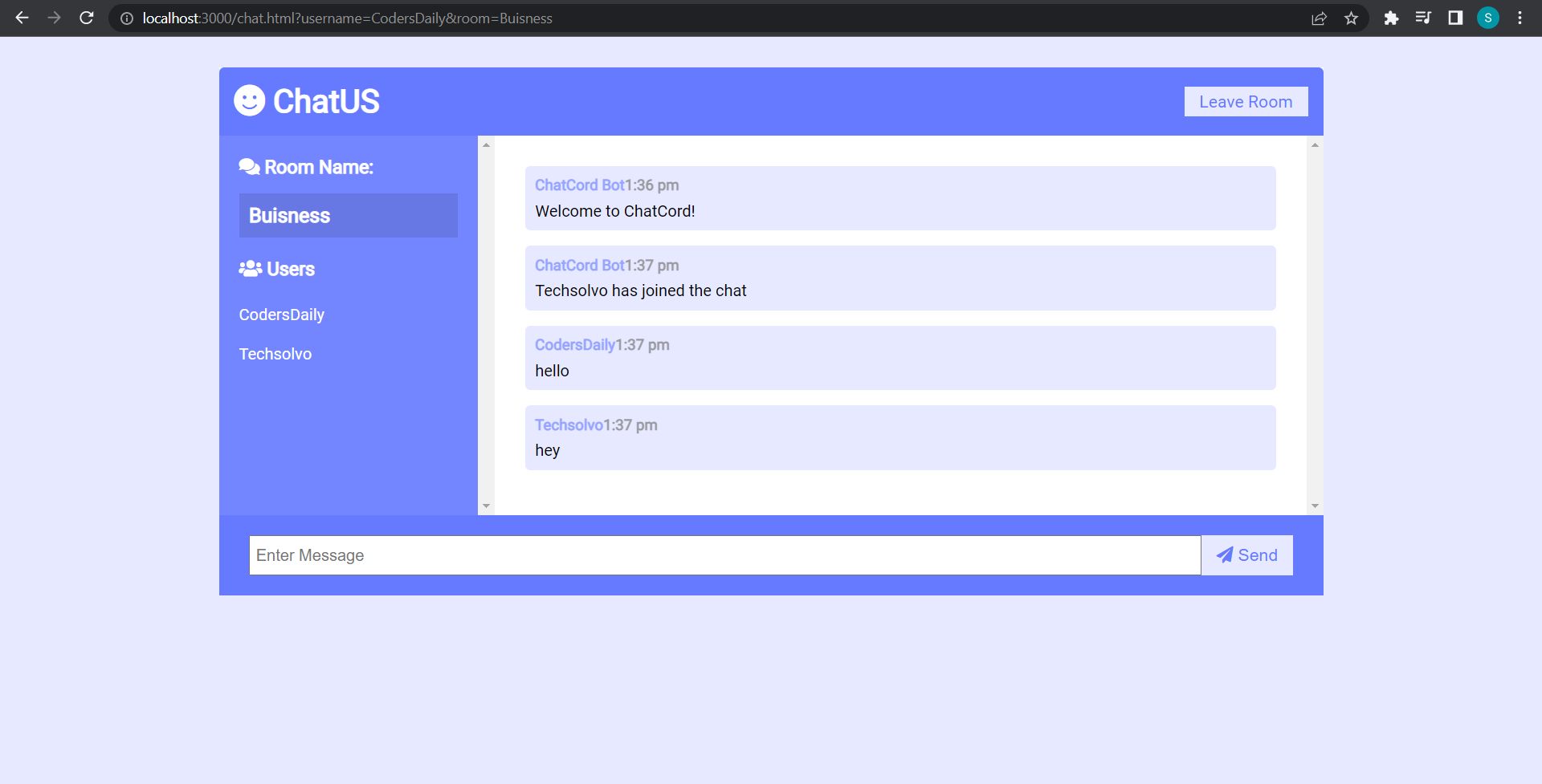 Enter your name and select your room and click on Join Chat.