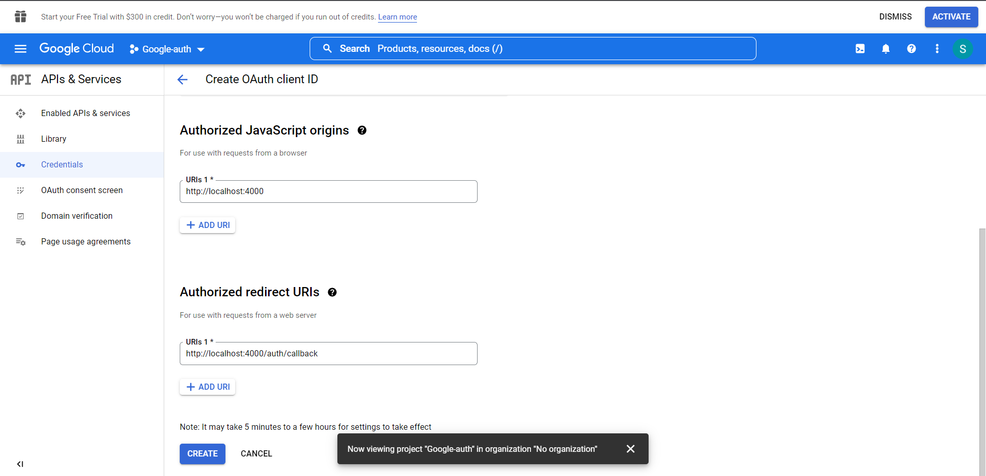 - After creating a new project, let's move to create credentials. Click on CREATE CREDENTIALS, then select OAuth client ID, and then select External.