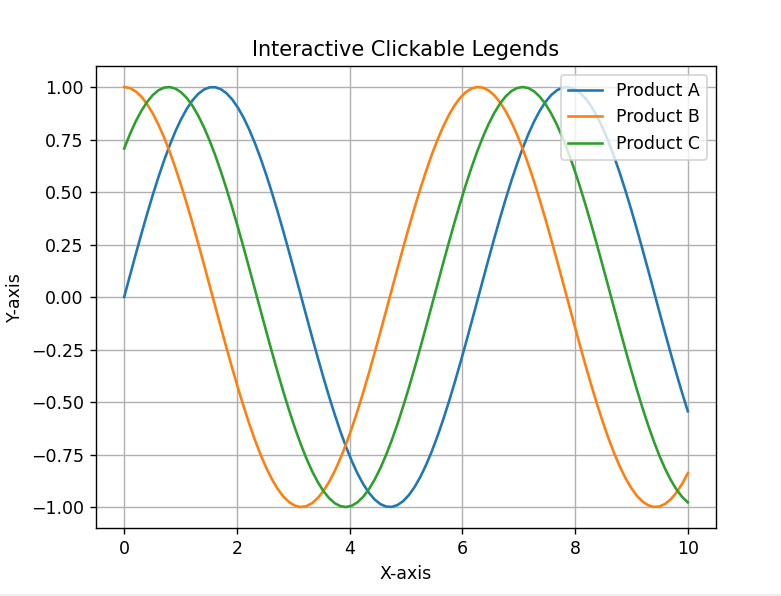 This code creates a plot with clickable legends, allowing users to toggle the visibility of each data series by clicking on the legend items.