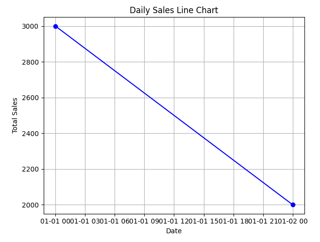 ● Used plt.plot() to create a line chart showing daily sales trend.