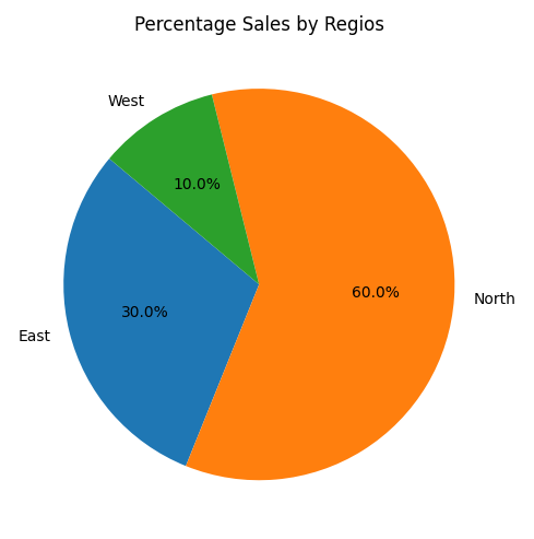This program creates a pie chart to show the percentage distribution of total sales across different regions.