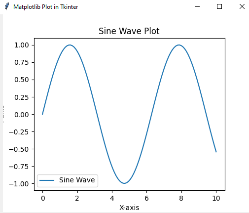 A Python program that embeds a Matplotlib plot inside a Tkinter GUI window, allowing you to interact with the plot in a graphical interface.