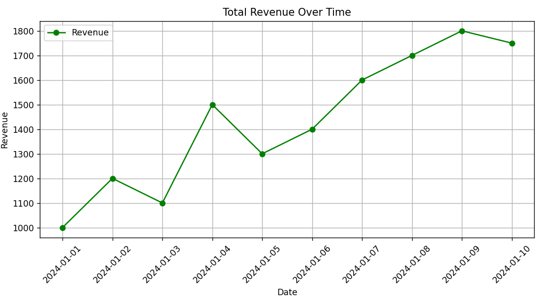 'Revenue': [1000, 1200, 1100, 1500, 1300, 1400, 1600, 1700, 1800, 1750]