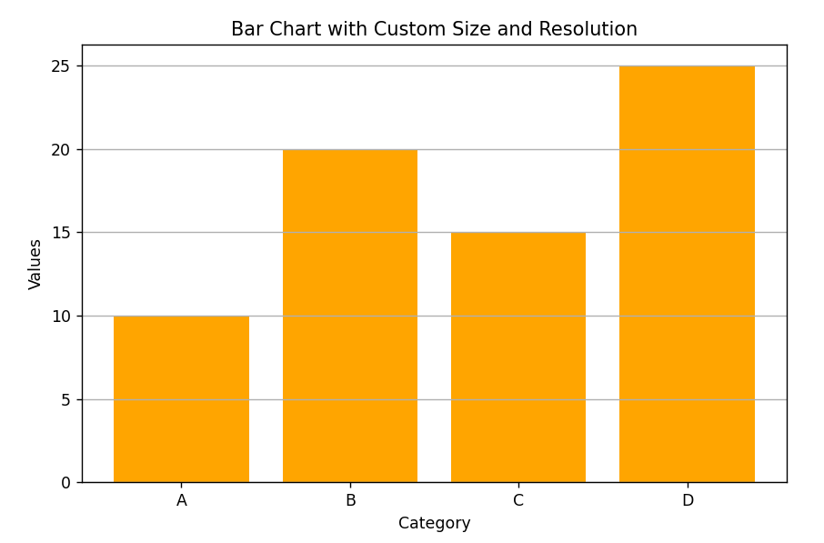 plt.title('Bar Chart with Custom Size and Resolution')