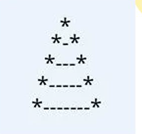 Each row consists of spaces + one star + hyphens + another star.
