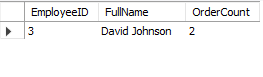 ● SELECT Employees.EmployeeID, CONCAT(Employees.FirstName, ' ', Employees.LastName) AS FullName, COUNT(Orders.OrderID) AS OrderCount