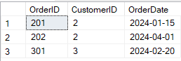 SELECT o.OrderID, o.CustomerID, o.OrderDate