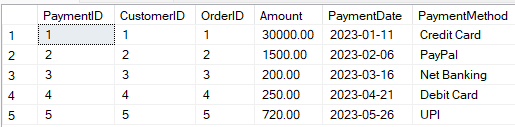 LAG(Amount) OVER (PARTITION BY CustomerID ORDER BY PaymentDate) AS PreviousPayment,