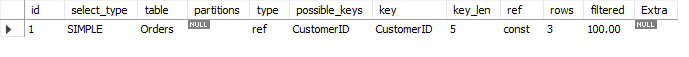 EXPLAIN SELECT * FROM Orders WHERE CustomerID = 1;
