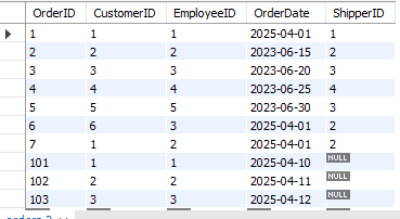 VALUES (NEW.OrderID, NEW.CustomerID, NEW.OrderDate, NEW.EmployeeID);