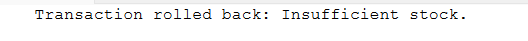 PRINT 'Transaction rolled back: Insufficient stock.';