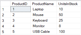 SET UnitsInStock = UnitsInStock - @OrderQuantity