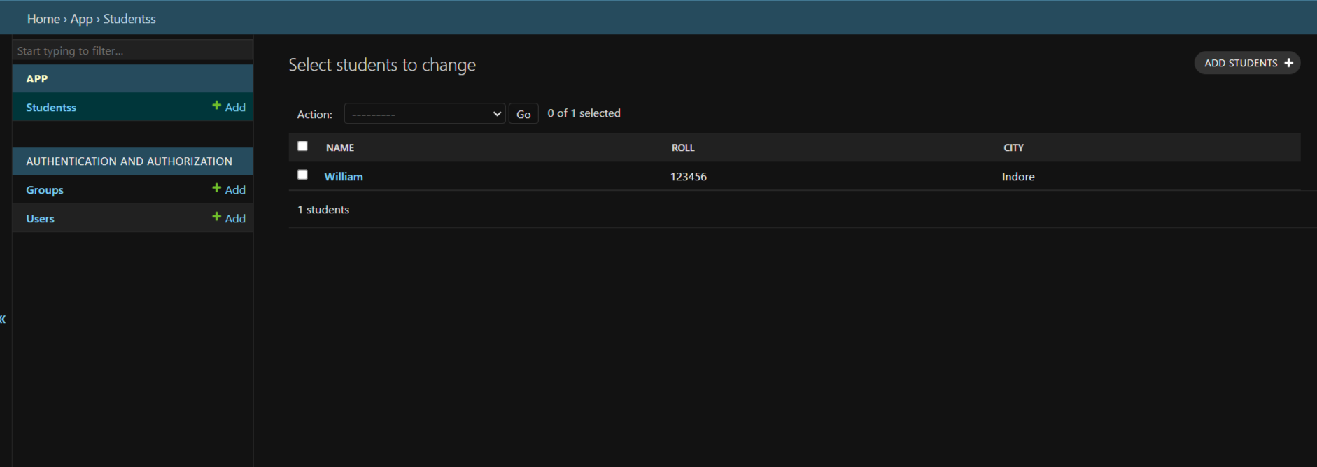 fields = ['Name', 'Roll', 'City']