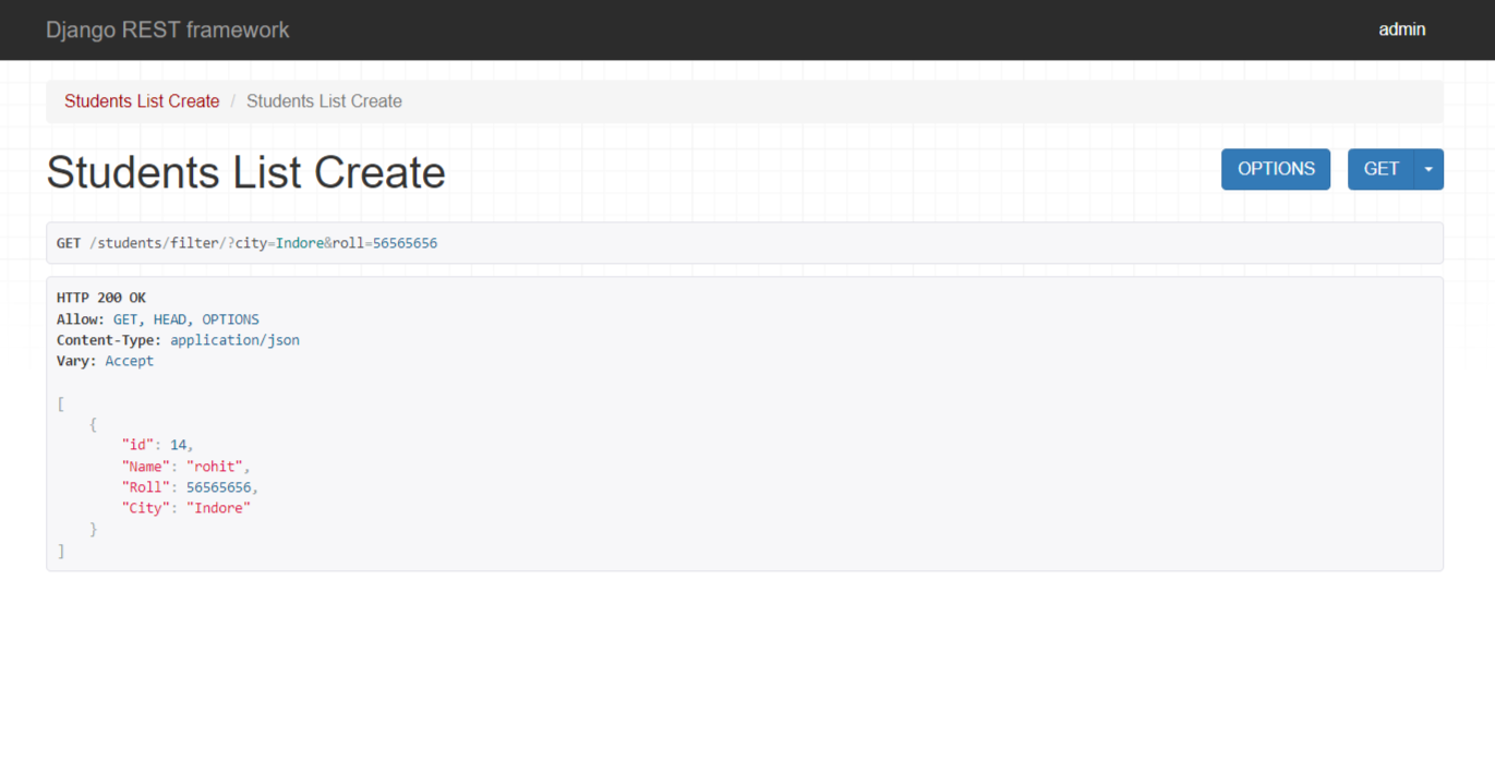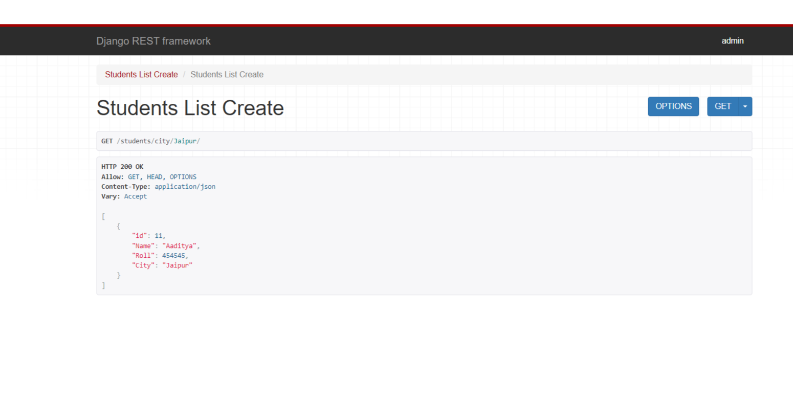 Now, let's check if the data in our API view is getting filtered or not when using the city parameter.