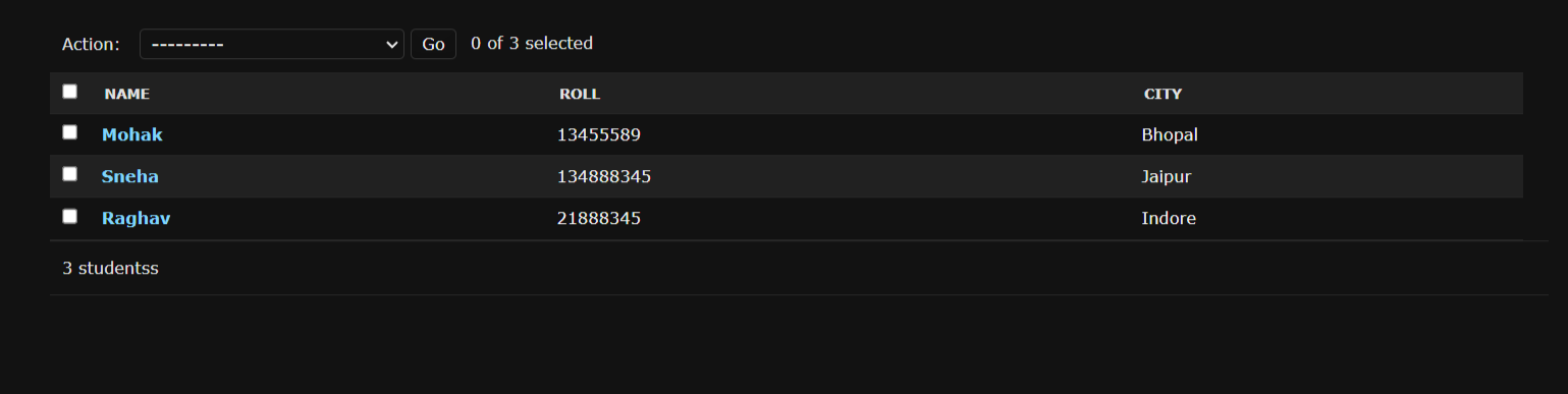b'[{"id":3,"Name":"Raghav","Roll":21888345,"City":"Indore"},{"id":4,"Name":"Sneha","Roll":134888345,"City":"Jaipur"},{"id":5,"Name":"Mohak","Roll":13455589,"City":"Bhopal"}]'