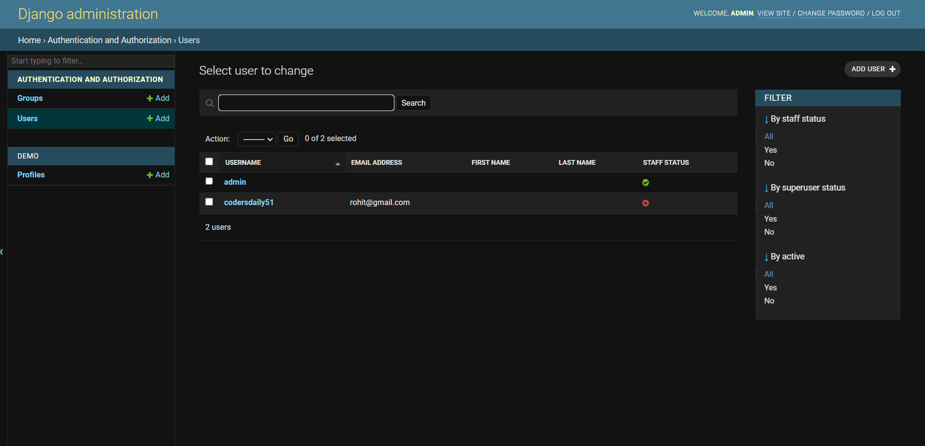 So, our user is created successfully now lets check if profile of our user is created or not.