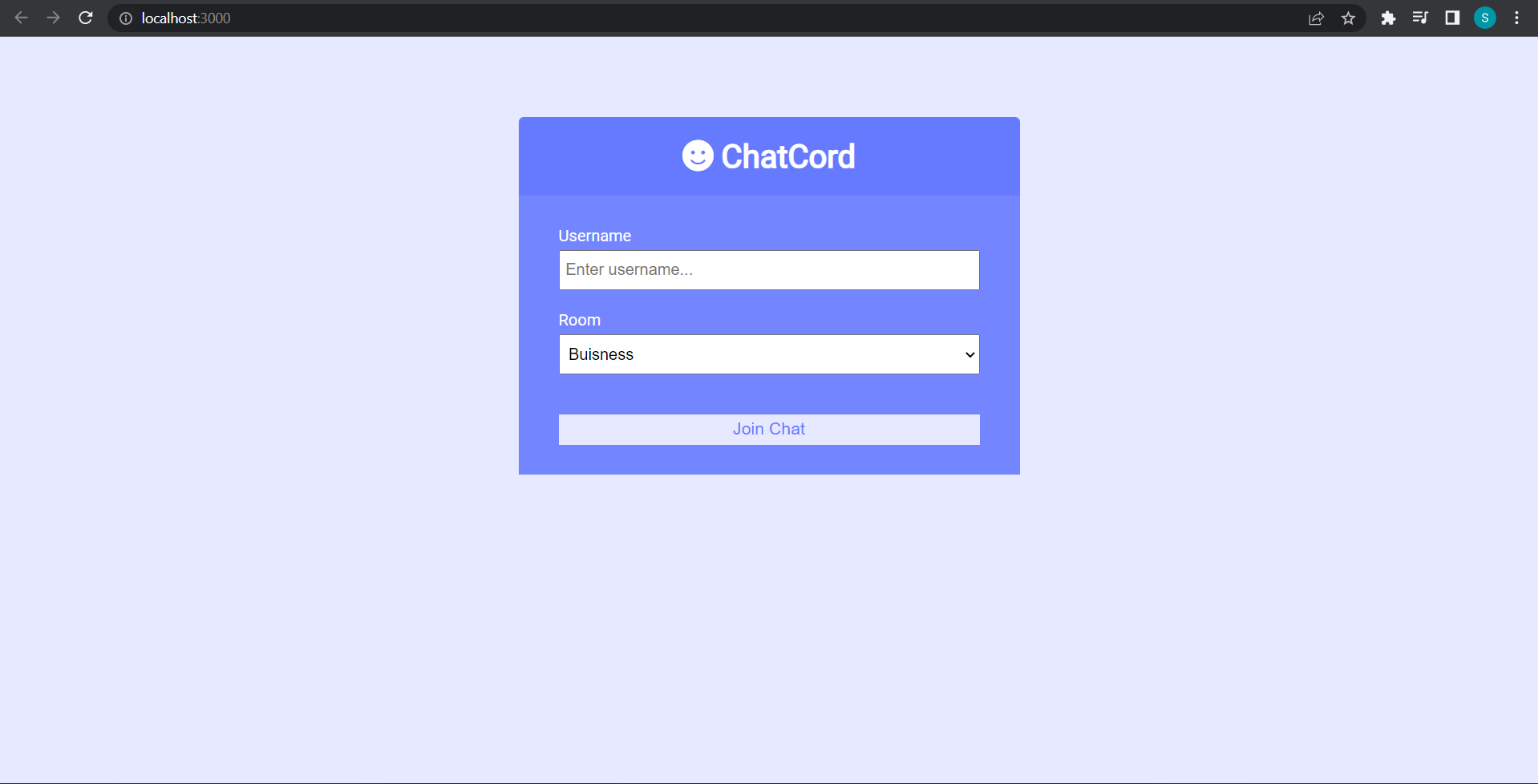 <h1><i class="fas fa-smile"></i> ChatCord</h1>