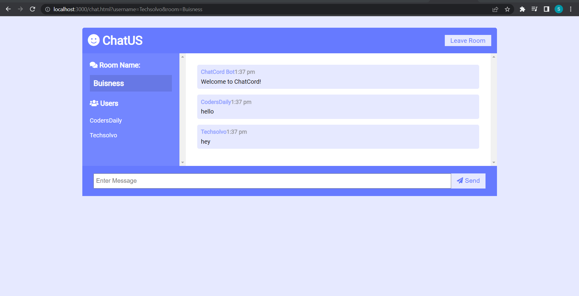 Enter your name and select your room and click on Join Chat.