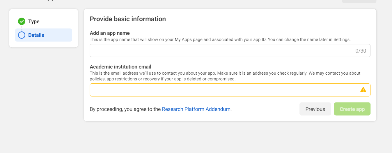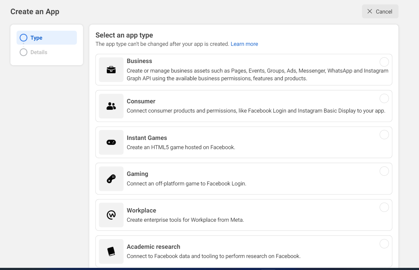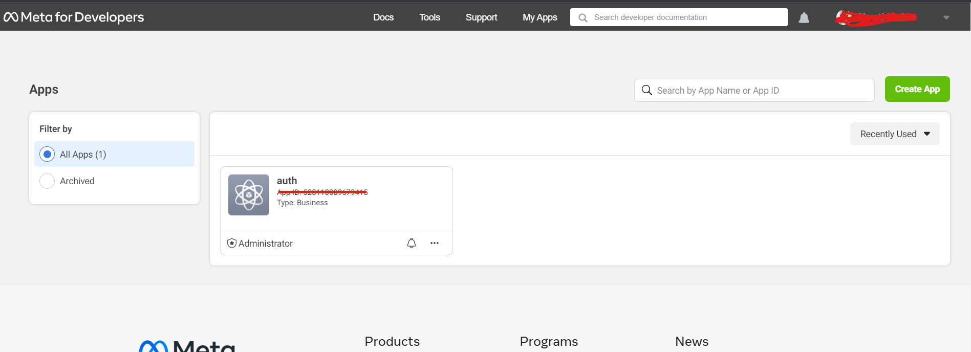 - Go to the Facebook App page: https://developers.facebook.com/app.