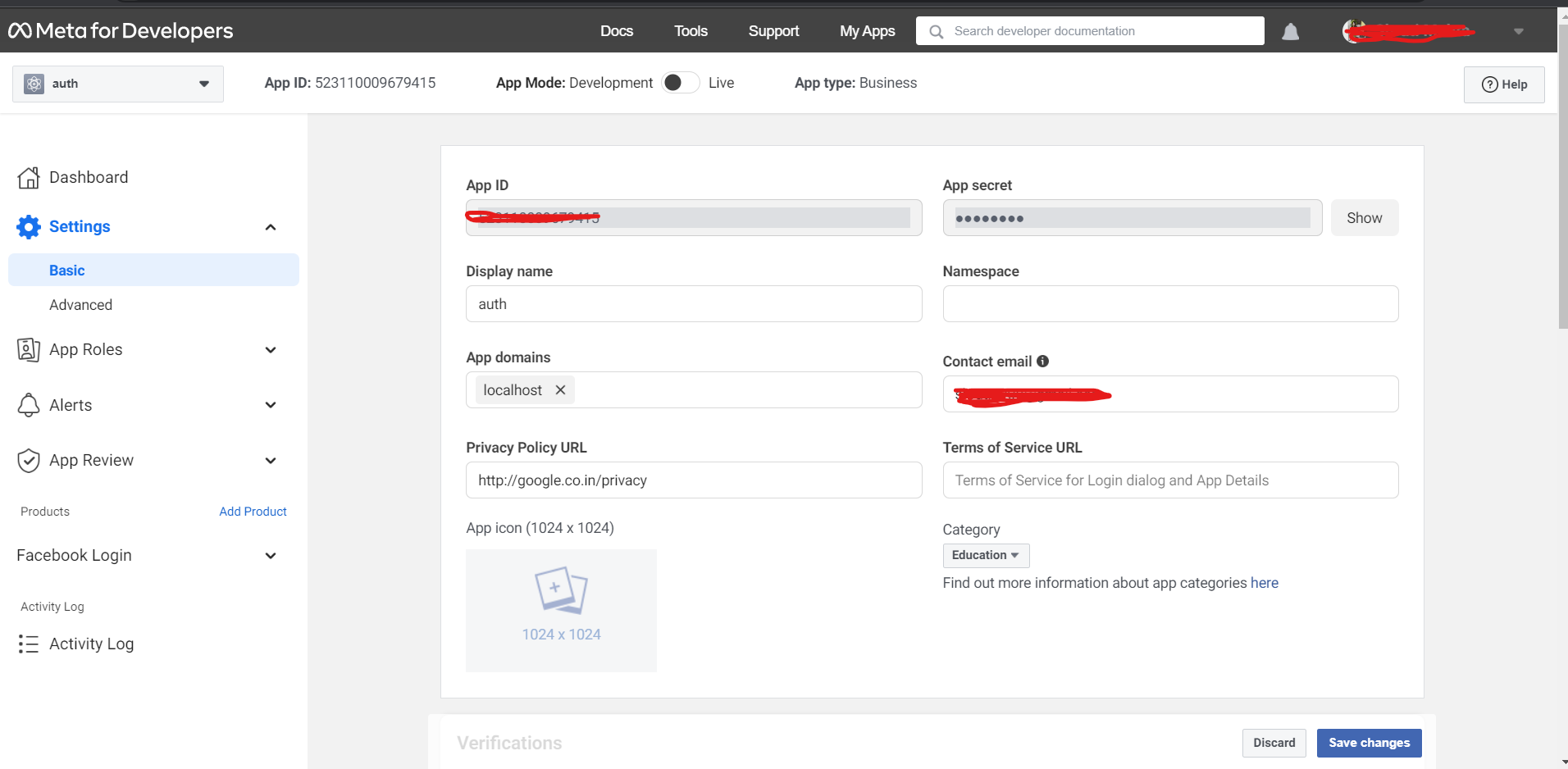 - After creating an app, click on setting present on the left side and then select basic, and do the following change done in below image and we will get AppID and App Secret.