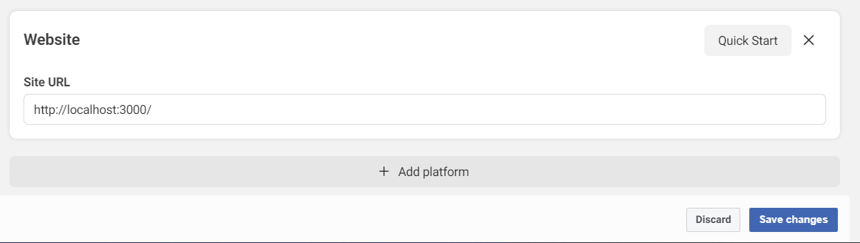 - Scroll Down and click on add platform and paste the local host URL and click on save changes.