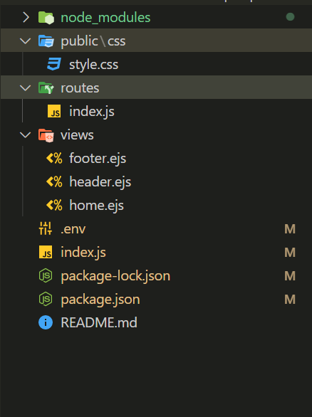 - For the frontend part, views/header.ejs, views/footer.ejs, views/home.ejs.