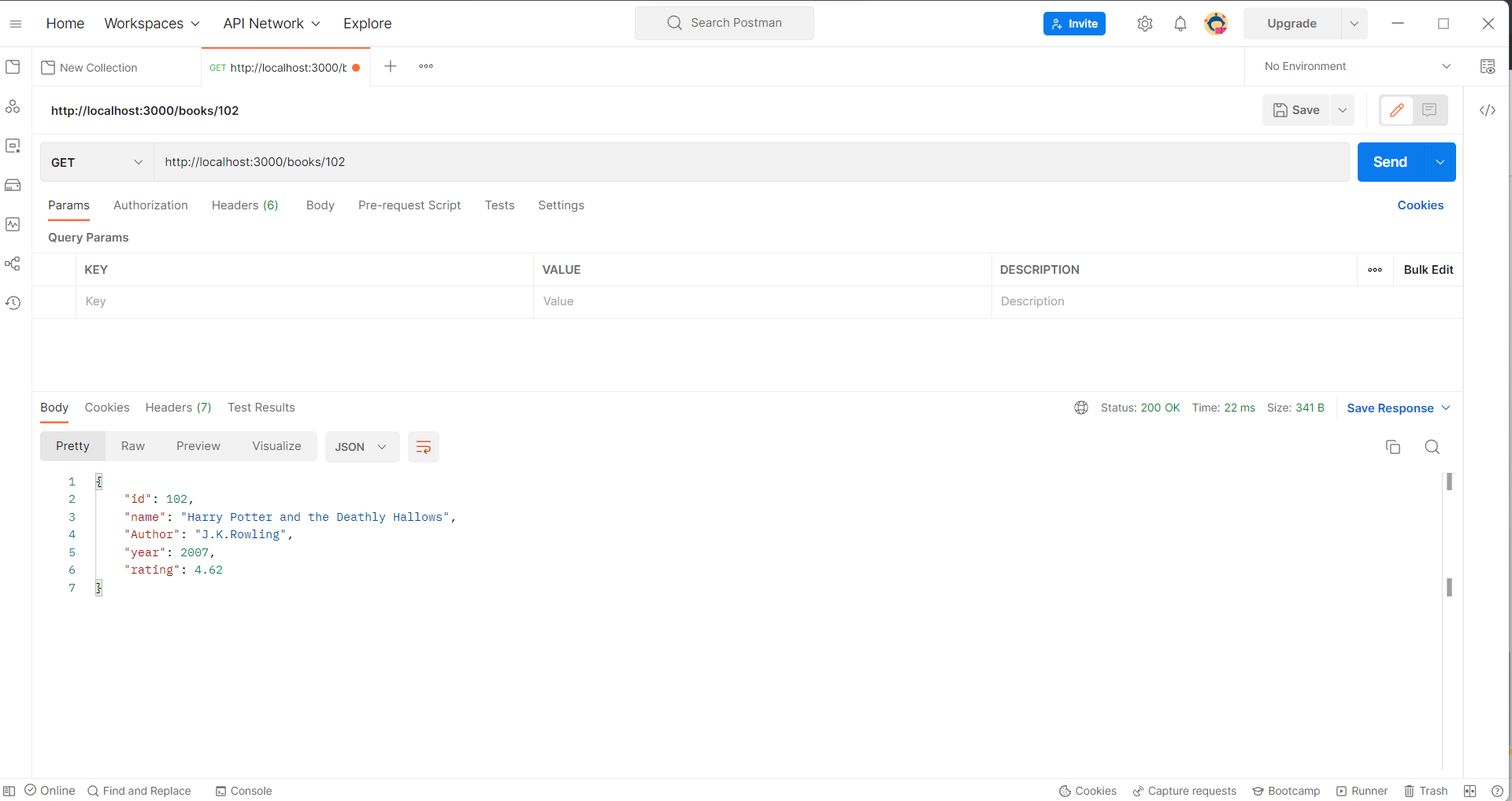 {id: 102, name: "Harry Potter and the Deathly Hallows",Author:"J.K.Rowling", year: 2007, rating: 4.62},