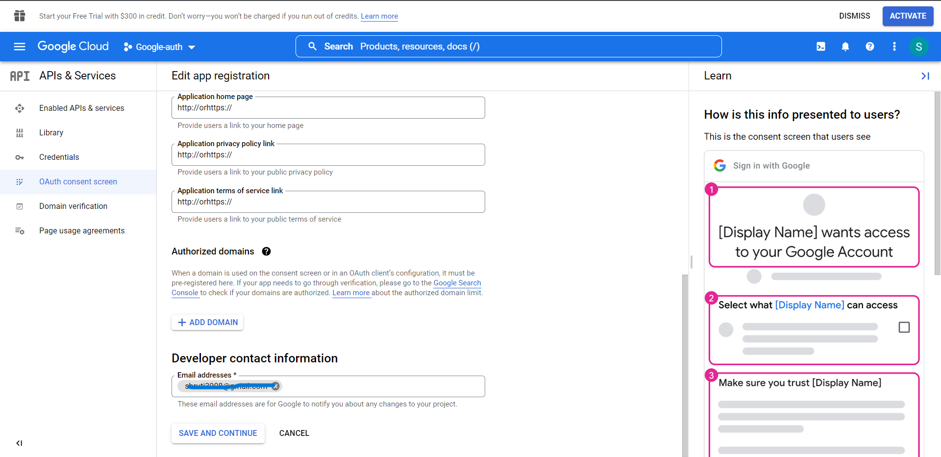 - Fill in the information to create credentials and then click on save and continue.