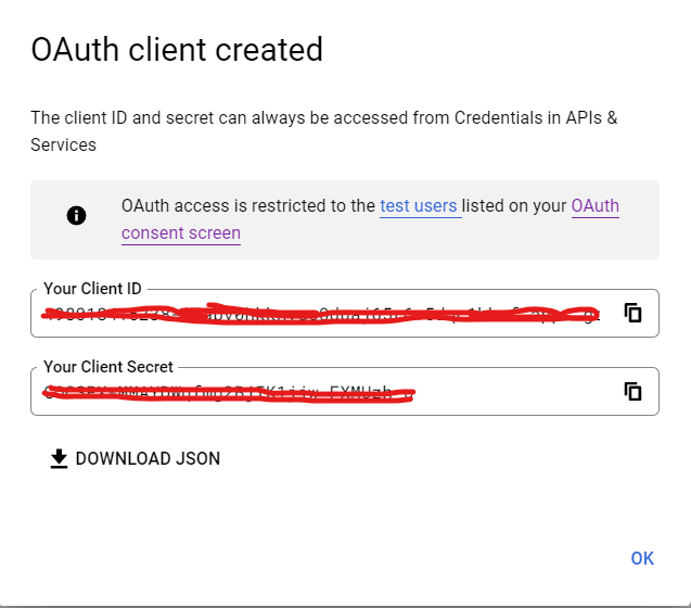 - Finally, you get your client ID and client Secret.