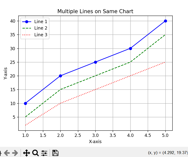 y3 = [2, 10, 15, 20, 25] # Line 3