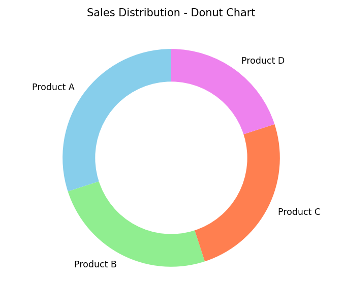 This program creates a donut chart by plotting a pie chart and placing a white circle at the center to give it a "donut" appearance
