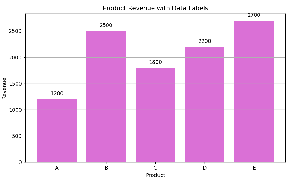'Revenue': [1200, 2500, 1800, 2200, 2700]