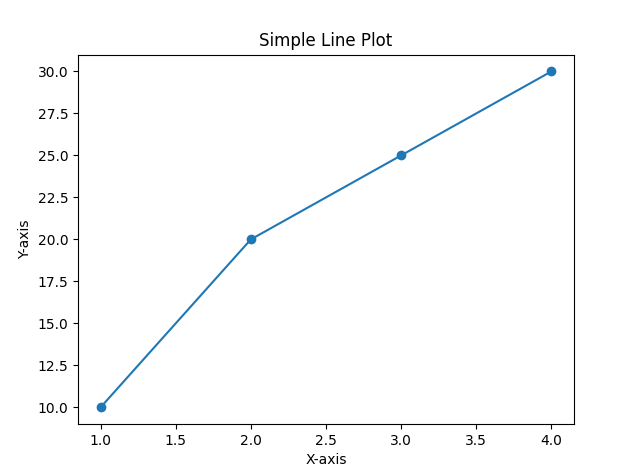 ax.plot([1, 2, 3, 4], [10, 20, 25, 30], marker='o')