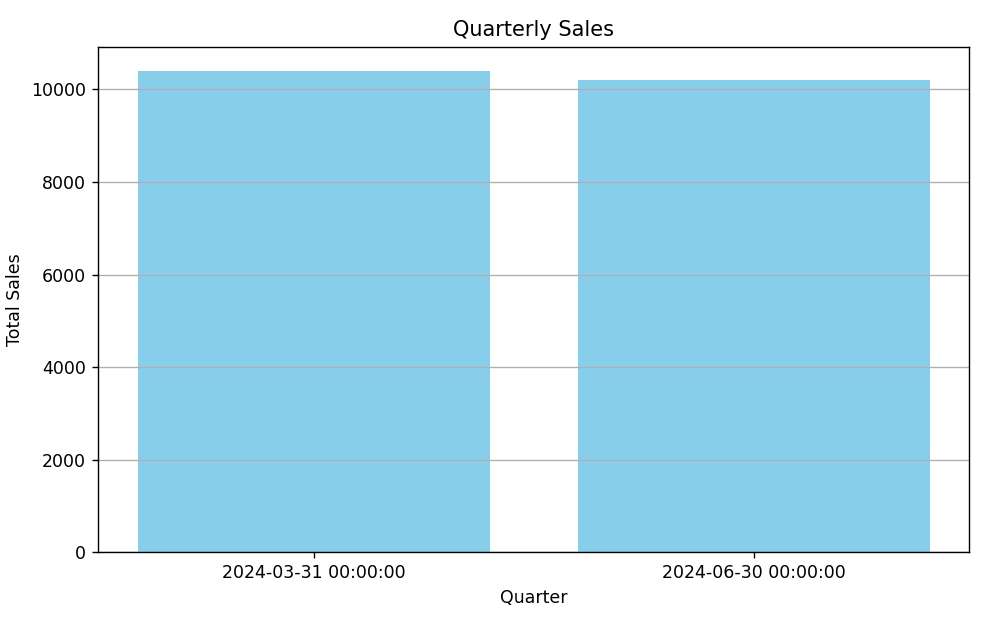 plt.bar(quarterly_sales.index.strftime('%Y-Q%q'), quarterly_sales['Sales'], color='skyblue')