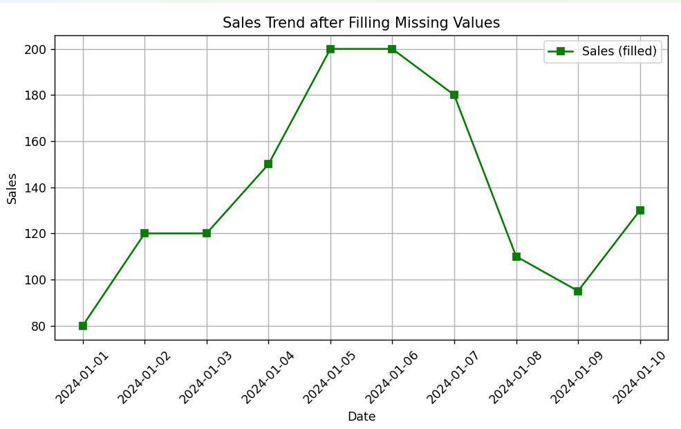 df['Sales_filled'] = df['Sales'].fillna(method='ffill')