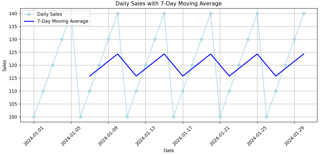 df['7-Day MA'] = df['Sales'].rolling(window=7).mean()