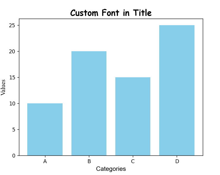 plt.title('Custom Font in Title', fontname='Comic Sans MS', fontsize=16, fontweight='bold')