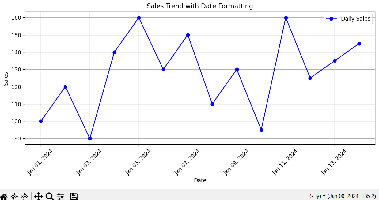 # Format the x-axis to display the dates in a specific format using matplotlib.dates