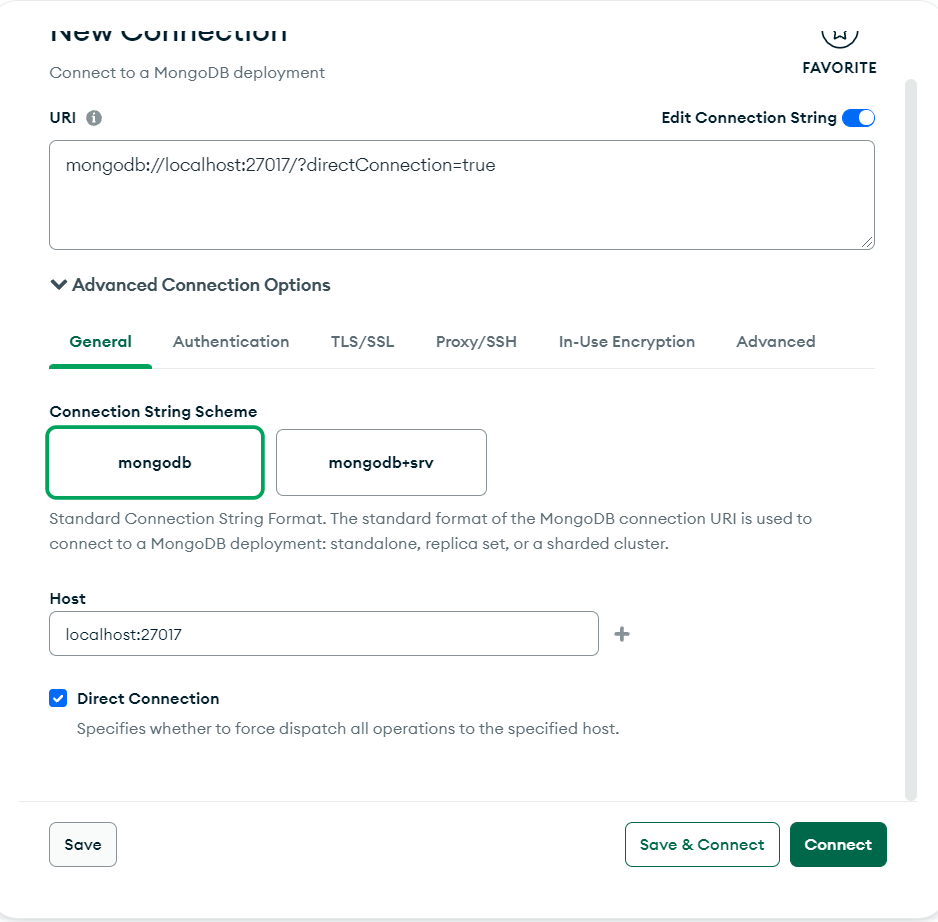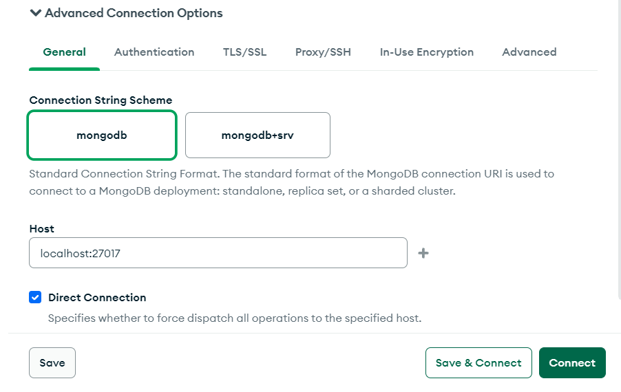 - Select a connection string scheme: mongodb and mongodb+srv.