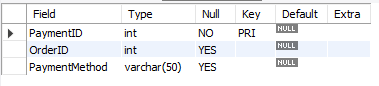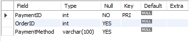 PaymentID INT PRIMARY KEY,
