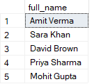 SELECT dbo.GetFullName(firstName, LastName) AS full_name
