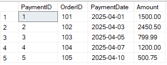 LEFT JOIN Payments p ON o.OrderID = p.OrderID