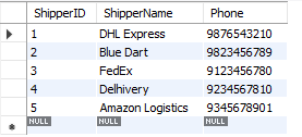 shippers Table: