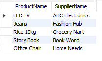 Products and Suppliers tables using a common SupplierID, so we can get the matching supplier for each product.