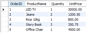 ● SELECT Orders.OrderID, Products.ProductName, OrderDetails.Quantity, Products.Price