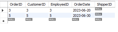 ● WHERE ShipperID IS NULL – Filters the results to show only those orders where the ShipperID is not assigned (NULL).