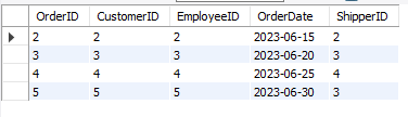 WHERE OrderDate BETWEEN StartDate AND EndDate;