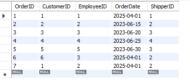 ● ORDER BY Orders.OrderDate